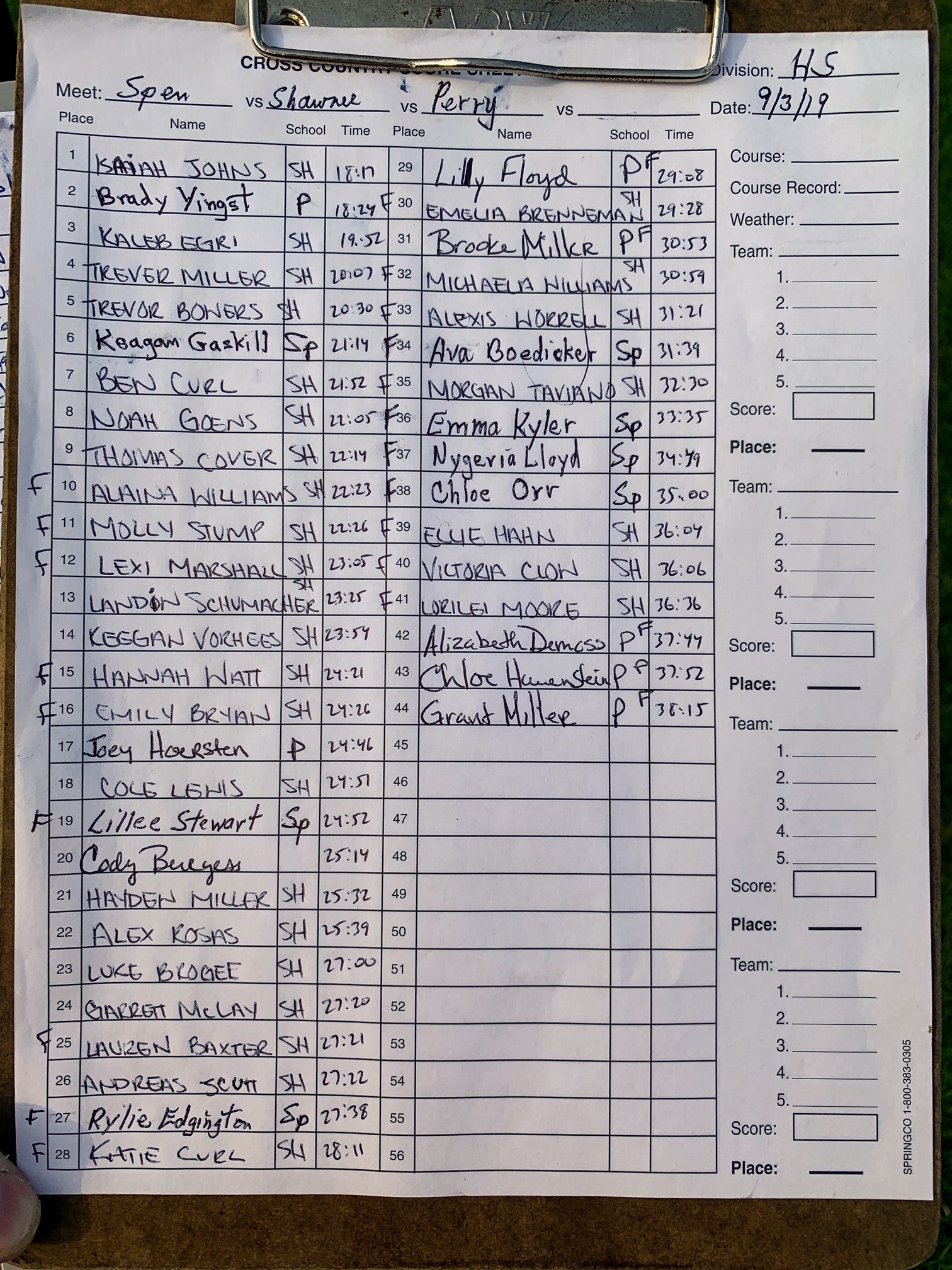 9:50 am - HS girls