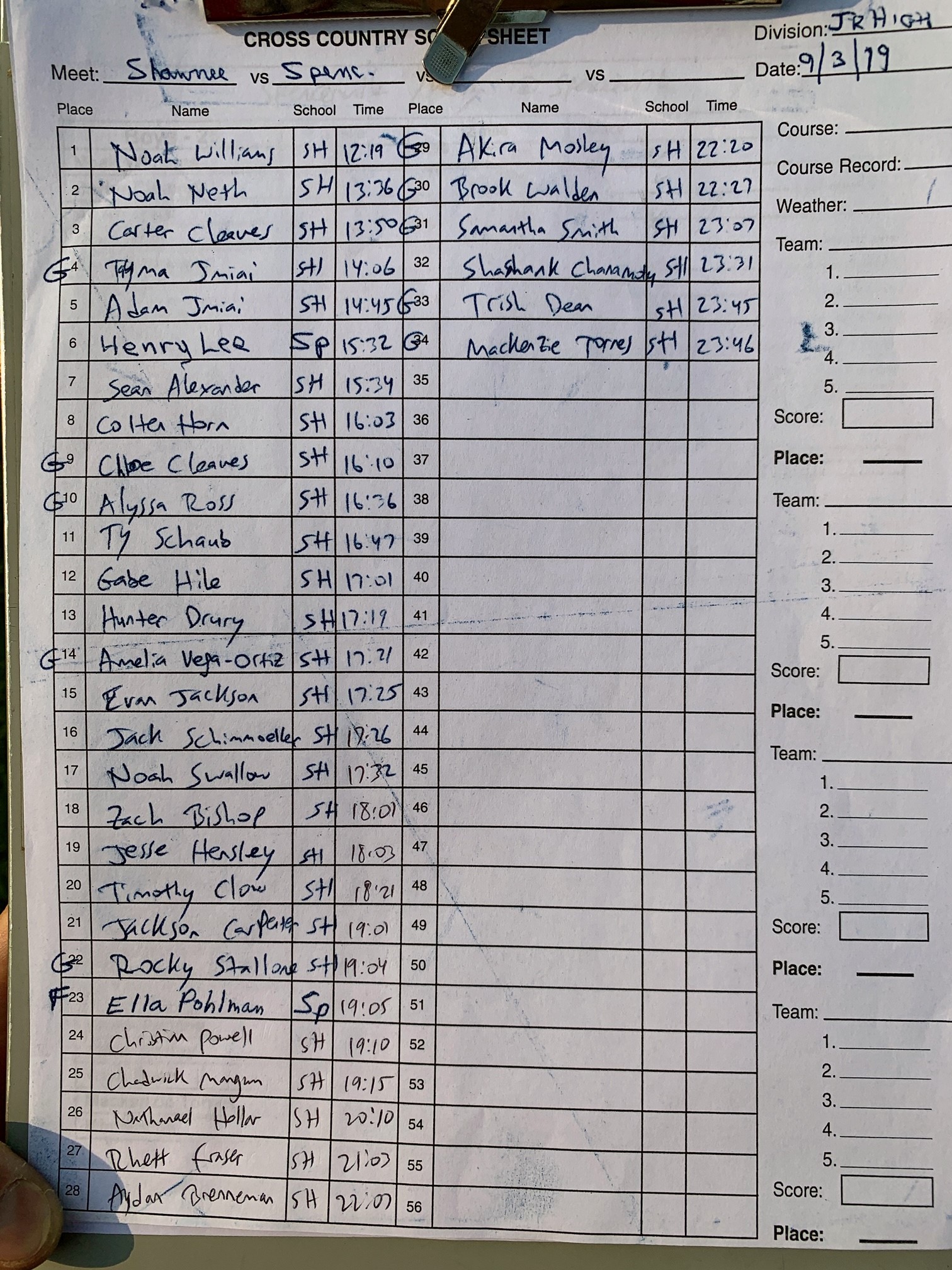 HSV = HS varsity HSR = HS reserve